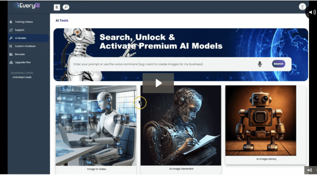 • Voice + Text Prompt Search: Just speak or type what you need—EveryAI finds the right tool for the job.